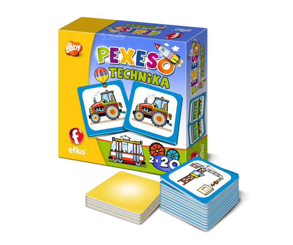 Pexeso s veselými obrázkami dopravných prostriedkov. Od firmy Efko - vyrobené v ČR. Cena 4,40. Nájdete na http://www.vrtulka.sk/index.php/hracky/vsehochut/efko-pexeso-technika-baby-detail