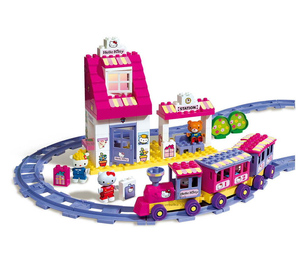UnicoPlus Vláčik Hello Kitty s Vlakovou Stanicou. Obsahuje vláčik, železničnú trať, vlakovú stanicu, 5 figúrok a príslušenstvo, spolu 95 dielikov. Cena 41,40 eur.