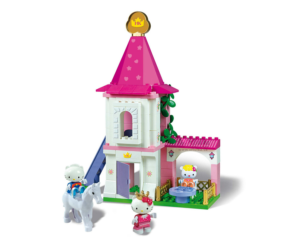 UnicoPlus Hello Kitty Malý Zámok. Obsahuje romantický zámoček, 4 figúrky a príslušenstvo, spolu 80 dielikov. Cena 26,90 eur.