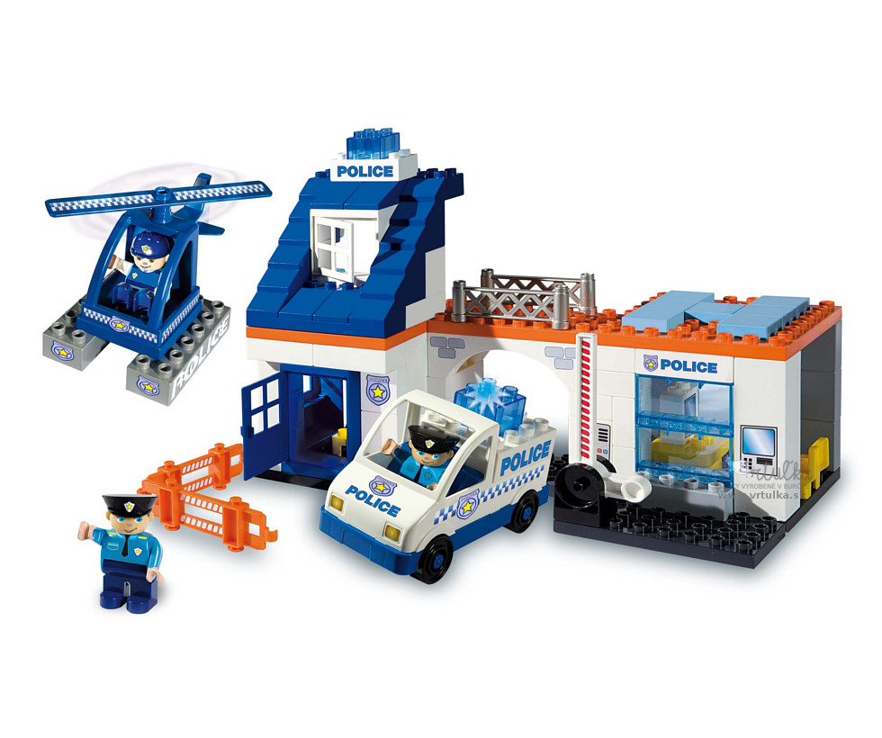 UnicoPlus Veľká Policajná Stanica. Obsahuje policajnú stanicu, auto, vrtuľník, troch policajtov a príslušenstvo, spolu 97 dielikov. Cena 32,90 eur.