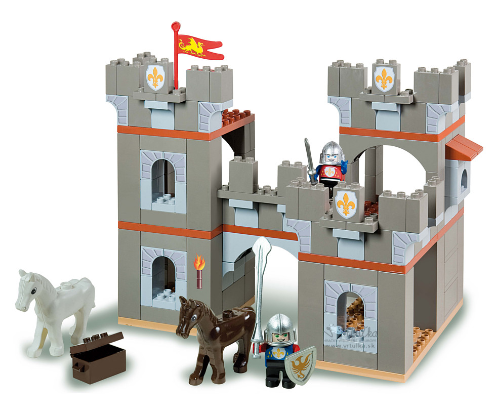 UnicoPlus Stredoveký Hrad s Rytiermi. Obsahuje stredoveký hrad, dvoch rytierov na koňoch a príslušenstvo, spolu 168 dielikov. Cena 37,80 eur.