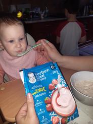 Túto kašu som sa bála vyskúšať pretože jahody sú vysoký alergén a naša má problém s ekzémom. Vyskúšala a asi ani veľmi nechutila. Ale možno preto, že bola chorá. Inak je výborná, starší syn rád dojedol.