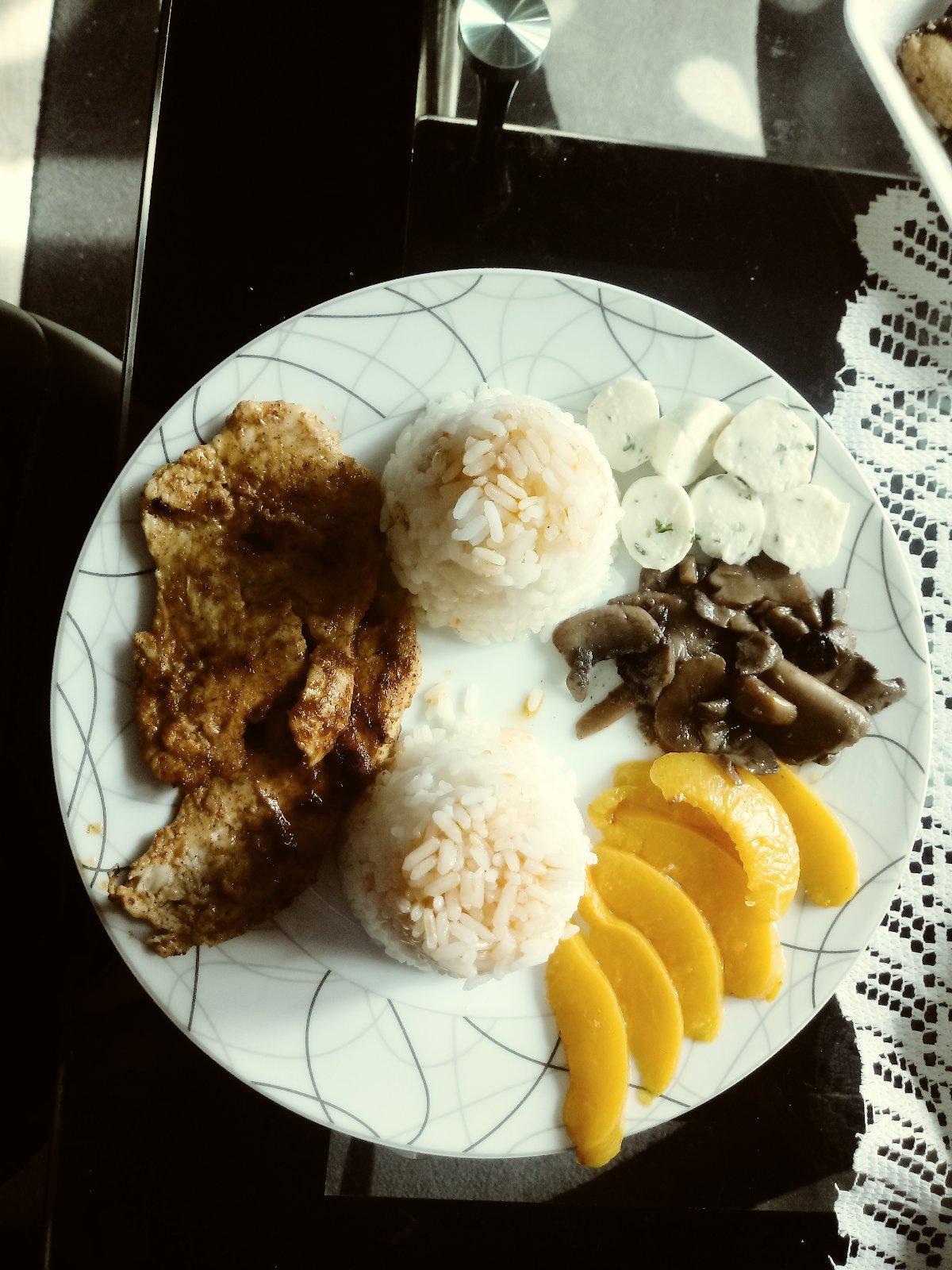 Gril, kuracia mäso s ryžou broskýňou hubami a mozzarelou