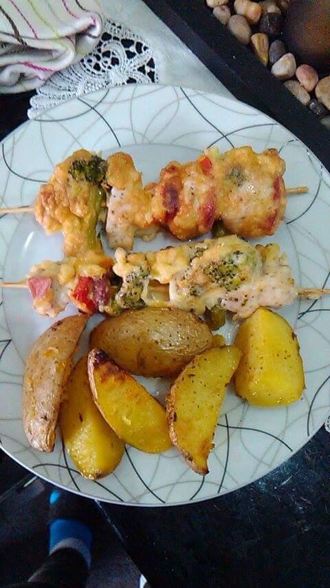 Zemiaky a ako zivanka s broko, klob,kurac m,syr, paprika a huba