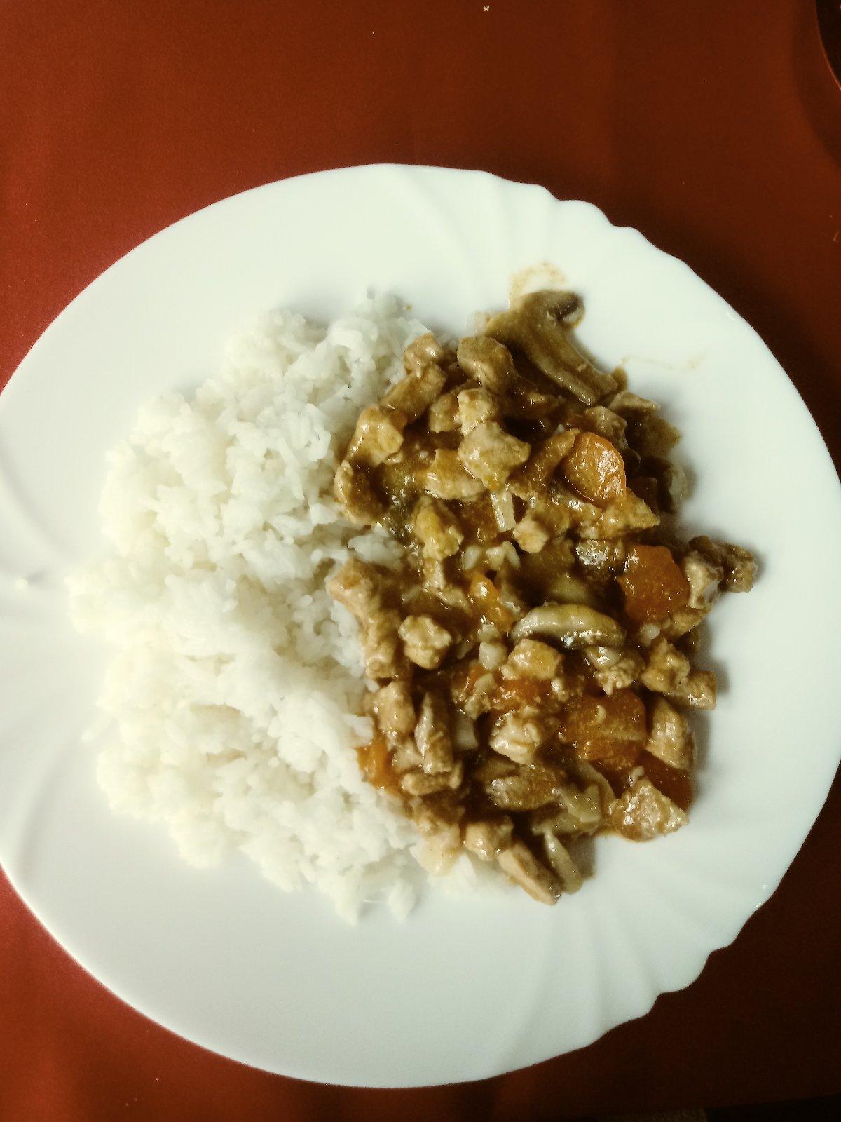 Brav. Maso s. Hubou a slaninou a ryza