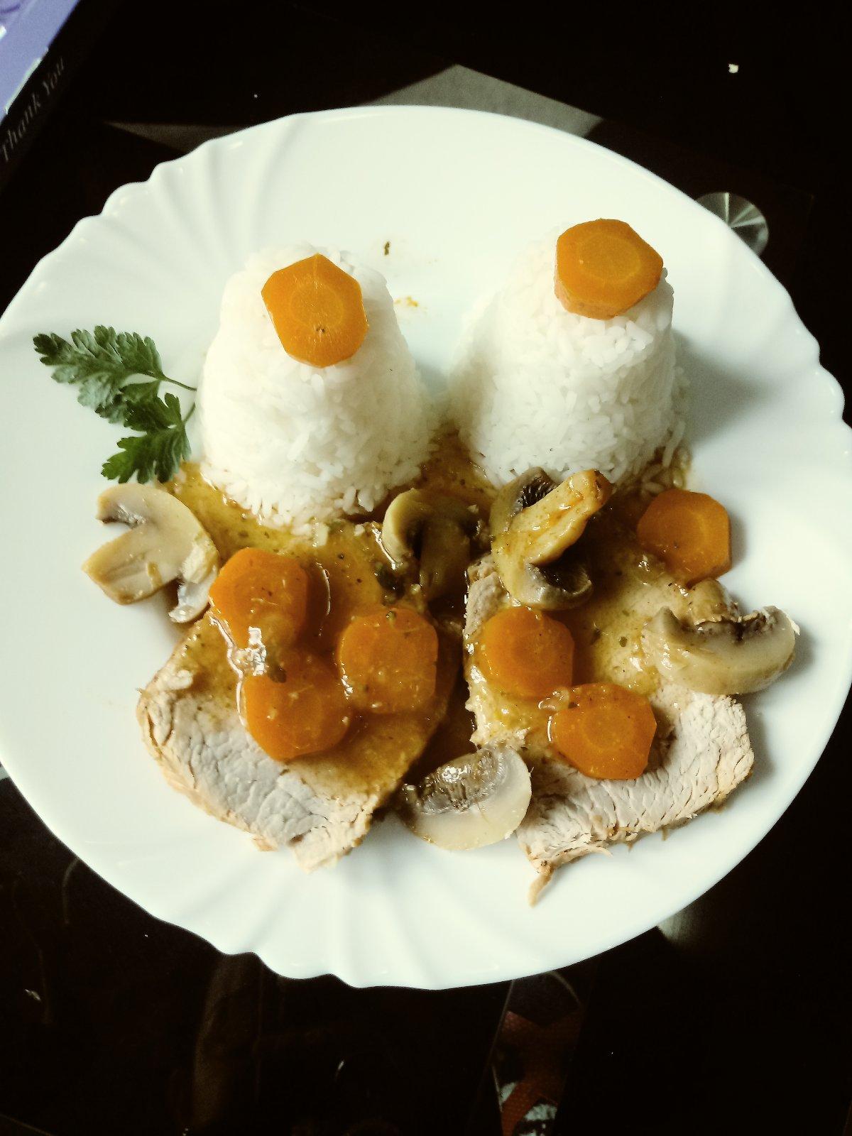 Brav. Kare s. Hubou a mrkvou omáčka a ryza