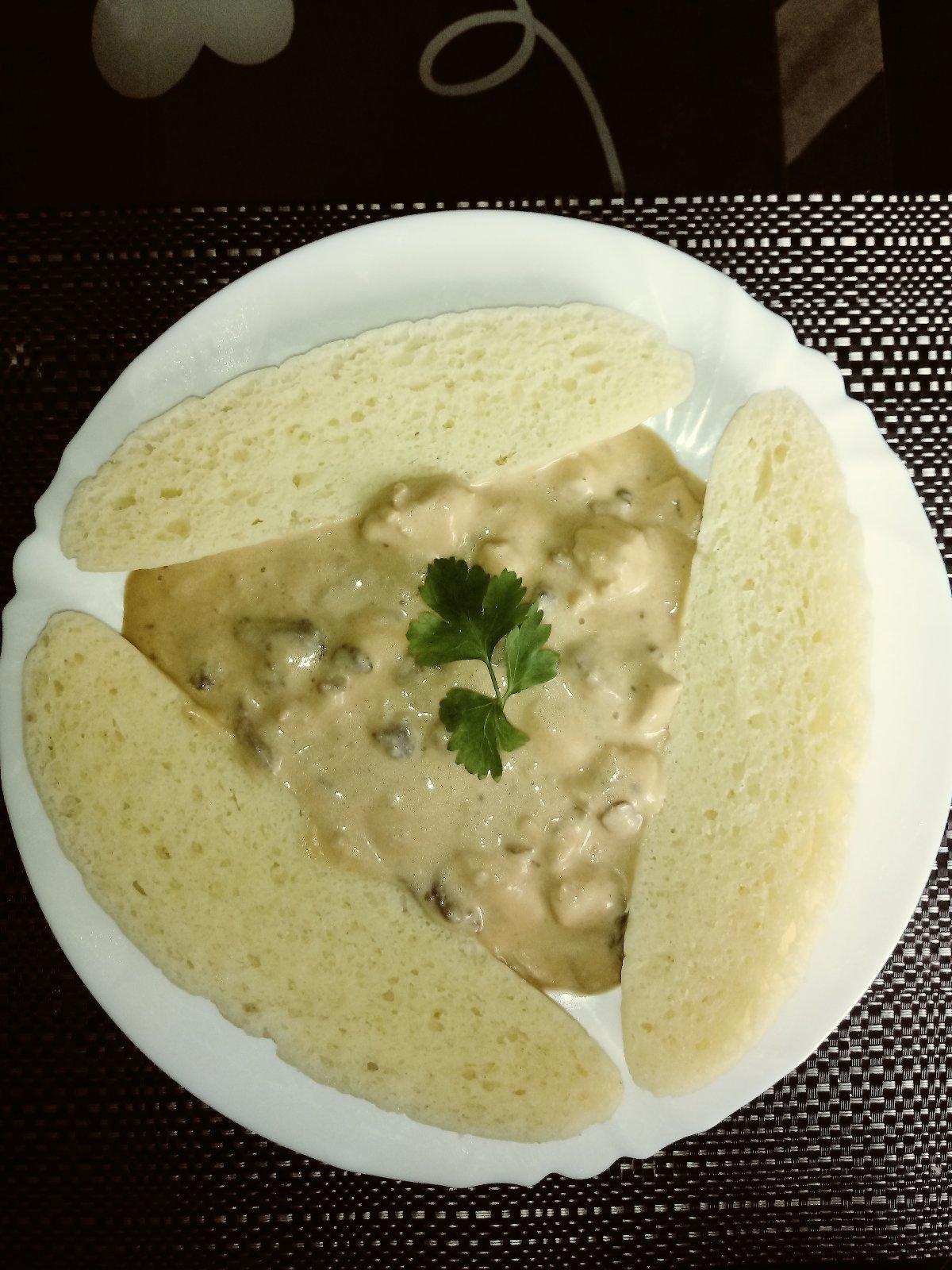 Houbová kurac. Maso na smotane a. Domaca. Knedla