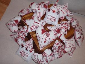 tento rok mi ucaril navrat k tradiciam, klasika biela- cervena- zelena, cipka ,motuzik latky pripominajuce vianocne ozdoby nasich starych mam. A samozrejme dotvorene po mojom s troskou primesianeho moderna...