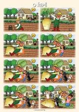 pomocou obrazkov - my sme si ich so synom vytlacili a vymalovali a spolu podla obrazkov vyrozpravali dej rozpravky, alebo pomocou kocky, ze sme si otacali kocku a hladali naslednost ci sme si citali rozpravky a trosku popritom "potrapili" hlavicky ulohami,ktore su naspodku kazdej strany a maju spojitost s dejom.