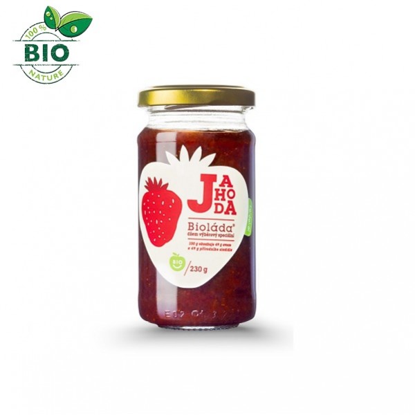 Biodžem, pasterizovaný, prisladený len jablčným koncentrátom a zahustený výťažkami z morských rias. Biodžem, pasterizovaný, prisladený len jablčným koncentrátom a zahustený výťažkami z morských rias. Obsahuje tak 99% ovocia (z toho jahody 50%). Jahodová bioláda je jedinečnou kombináciou slovenských jahôd, jablčného koncentrátu a výťažkov z morských rias. Sviežu chuť i arómu si bioláda zachová vďaka tomu, že neprechádza varom.