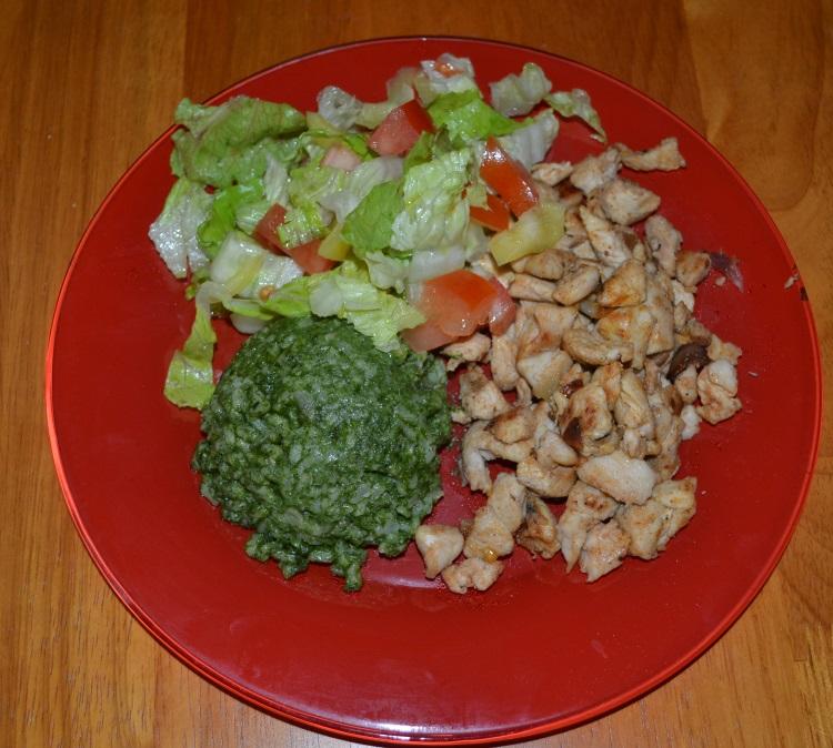 Kuracie kúsky so špenátovou ryžou a šalátom