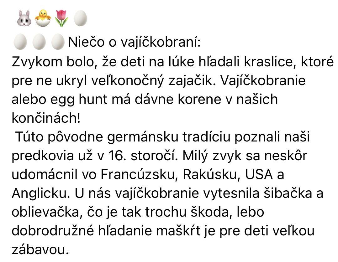 @mamamasama Ja som tiež vždy neznášala Veľkonočný pondelok a to, že mama otvorila dvere každému od skorého rána. Moje deti zbierajú vajíčka ( nechystáme sa preto do USA😄 ) a stretneme sa s rodinou..trochu info o vajíčkobraní👇🏻