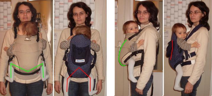 Ergonomicky nosic podopiera nohy od kolienka po kolienko do tvaru M, chrbati ma dieťa zagulateny, je pods a dene takzr nanici chrbticu ,,sedenim",je pohodlnejsi aj pre nosiaceho (bedrovy pad, lepsie polstrovane popruhy) ...