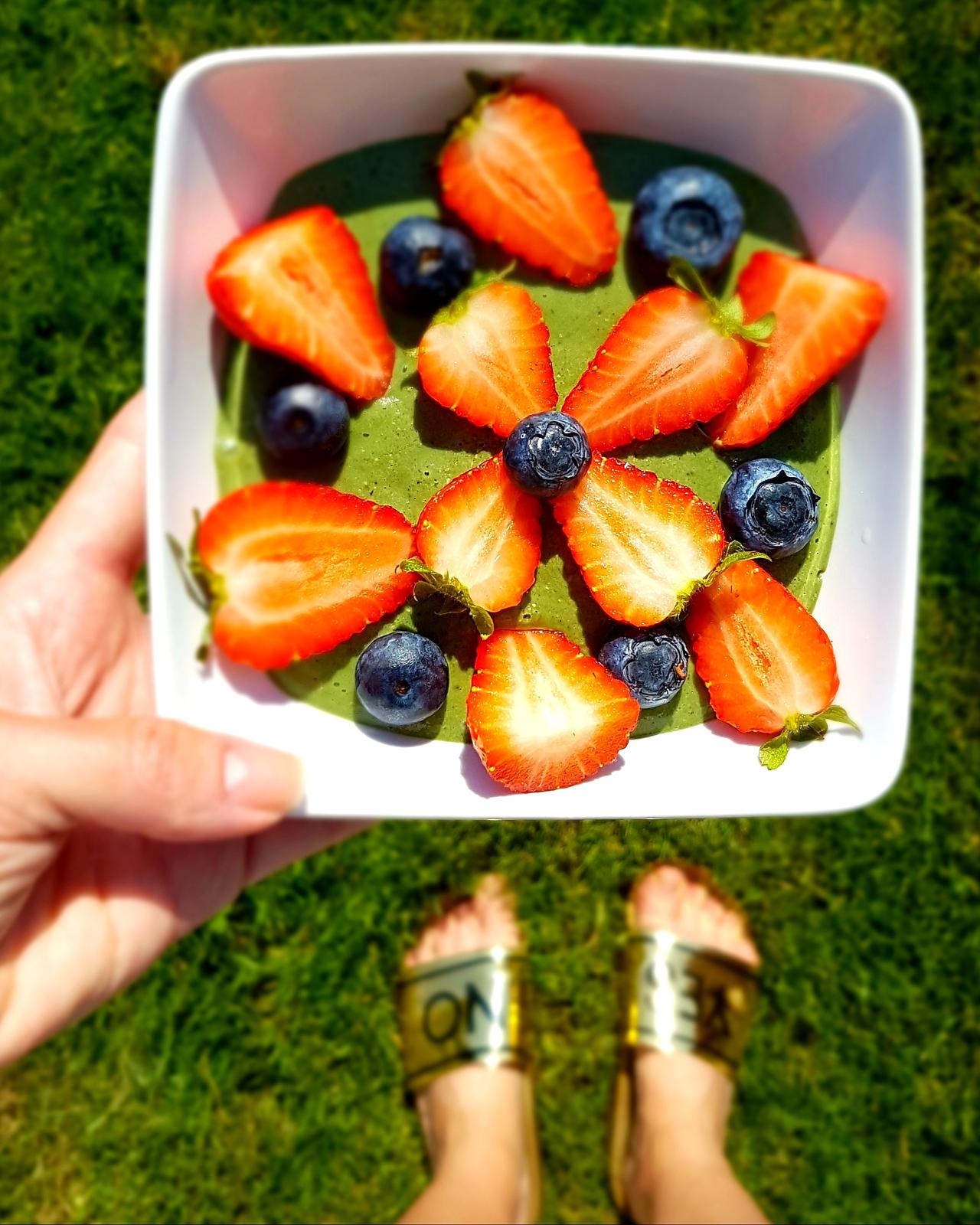 2. ovsená kaša s odmerkou supergreens a rôzne bláznivo farebné kombinácie ovocia.