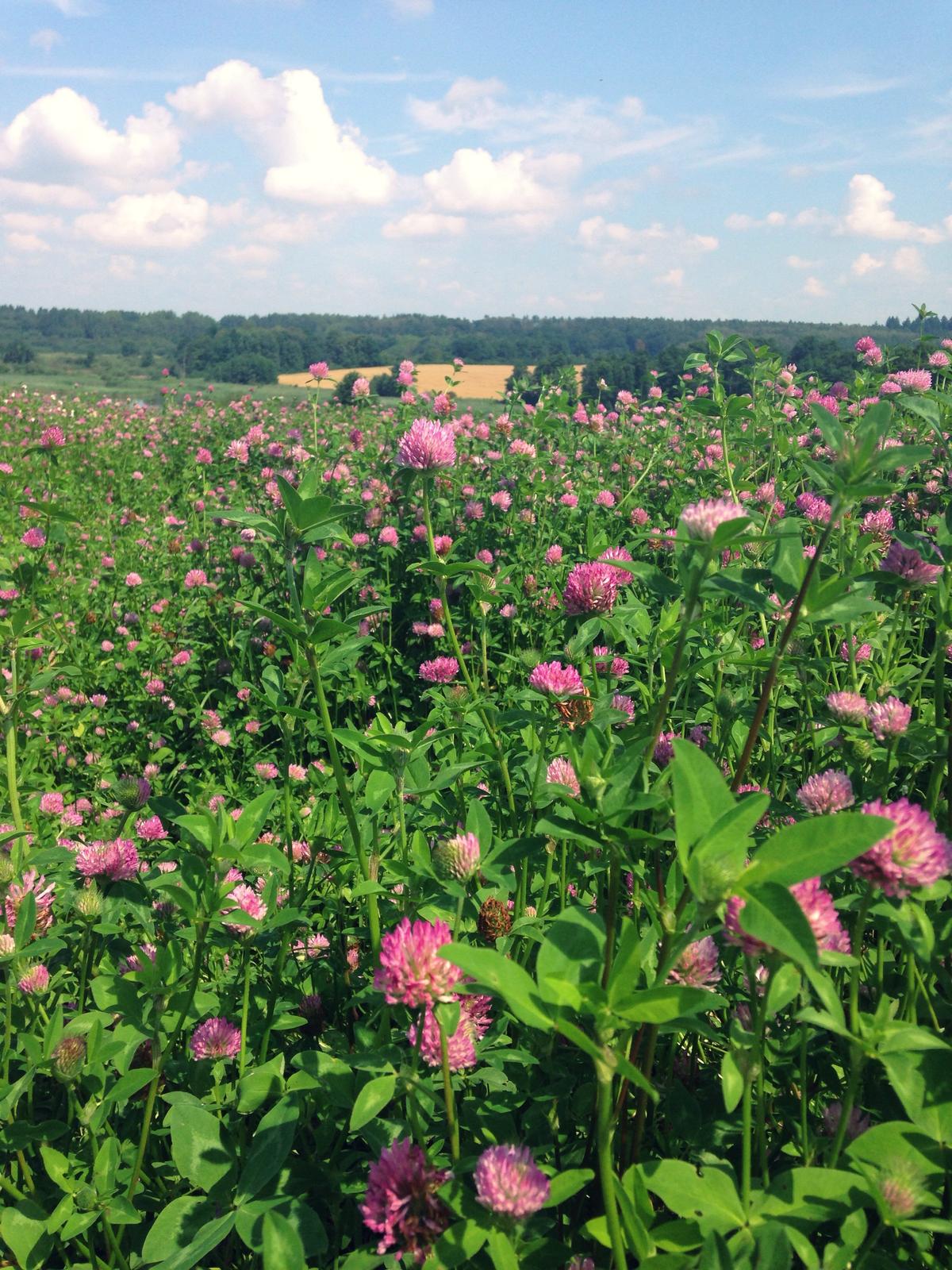 Ďatelinové polia na bio farme HiPP sa nekosia v čase od 11:00 do 14:00h. z toho dôvodu, aby sa neublížilo včelám, 🐝 ktoré v tom čase opeľujú kvety.