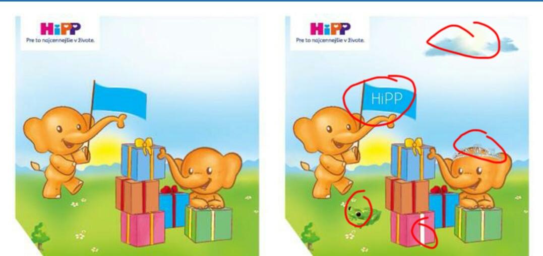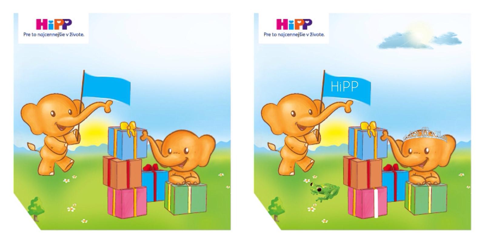 Chybajuce- oblaciky,zabka,napis HiPP,ina farba maslicky a korunka