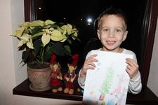 Takze mi tradcne kupime vianocnu ruzu, 1.12 k nam pridu skriatkovia a donesu Adventny kalendar. Alexko si rozmysli co by si prial na vianoce, prv sme to spolu pisali, teraz uz sam, ziadne vystrihovanie s katalogov dracik, to neuznavam, ale pekne musel kreslit a pisat. a vecer sme to dali do zimnej zahrady skriatkom, nech to odnesu Jeziskovi. Dali sme im tam sladkosti nech zvladnu dlhu cestu. Ked Alex zaspal pootvarala som sladkosti, ponahryzala a list zobrala. a on rano hned kuka ci tam je list, ci popapali. No a takto to robime kazdy rok. Teraz ma 8r, myslela som ze uz tento rok nie ale predsa, spomenul si a list uz ma napisany. na foto vianoce 2014.