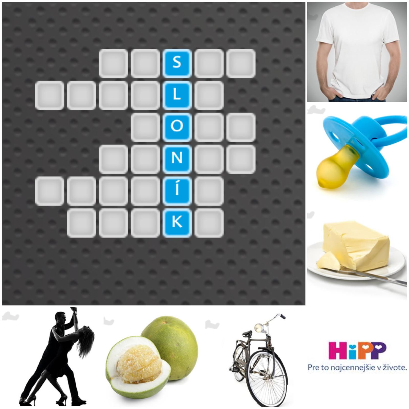 maslo, pomelo, kolo, tanec, cumlík, triko = SLONÍK