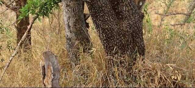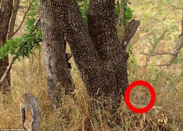 pri veľkom strome leopard,wau ale ho ani nie je vidno