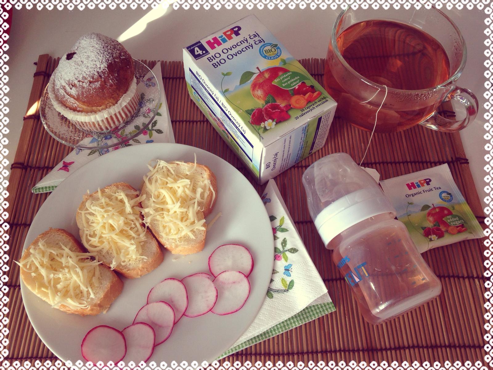 Nedeľné raňajky hotové. 🍴😊 Nesmie chýbať čajík HiPP pre mňa aj pre dcérku. 👶