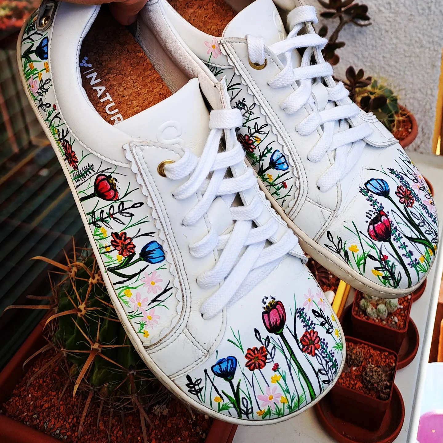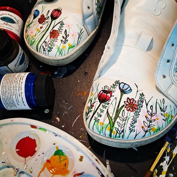 Inšpirácia kvitne všade okolo, tak som drobné nedostatky bielych barefoot topánok prekryla farbami na kožu a textil.