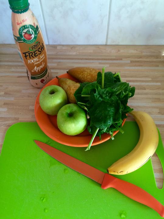 cerstvy spenatik, hrusky, jablcka, bananik a jablckovy RIO FRESH pre lepsiu konzistenciu :)