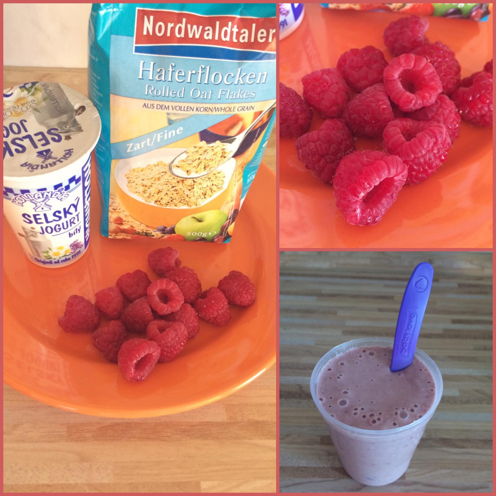 vlocky jogurt maliny, nakoniec som pridala este bananik 🙂 bola to velka mnamka 🙂