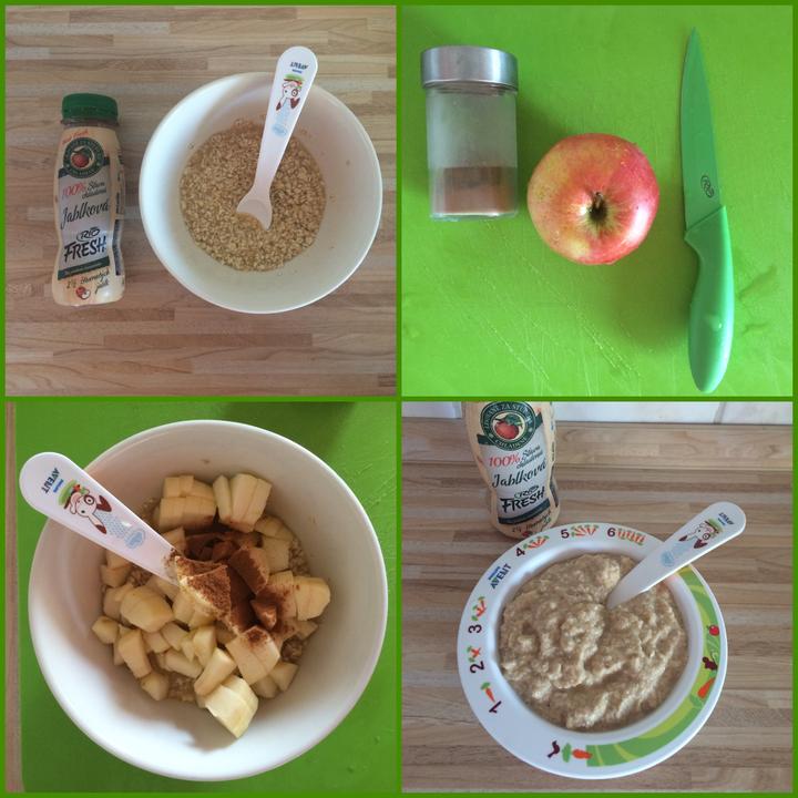 jemne mlete ovsene vlocky som zaliala jablckovym #riofresh a nechala napucat skoro pol hodinku (kym som spratala kuchynu a postavilq obed) 😊👍🏻 potom som pridala nadrobno nakrajane jablcko (kto chce, moze nastruhat, ja som bola leniva) 😇 a trosku skorice a cele som to mixla ponornym mixerom! 👌🏻 bolo to vyyyboooorneeee! 😊