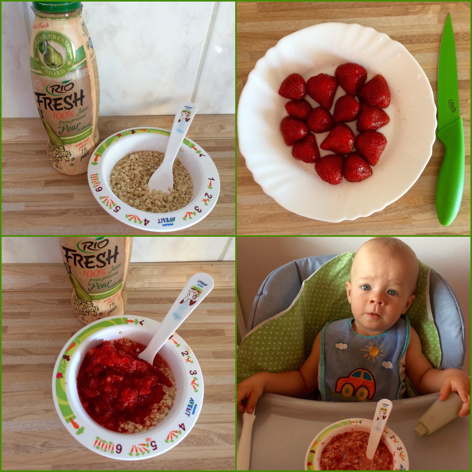 jemne mlete ovsene vlocky som zaliala hruskovym #riofresh a nechala napucat. potom som jahodky prekrojila napolku a popucila vidlickou.. vsetko som zmiesala a super sladucke ranajky boli na svete 🙂