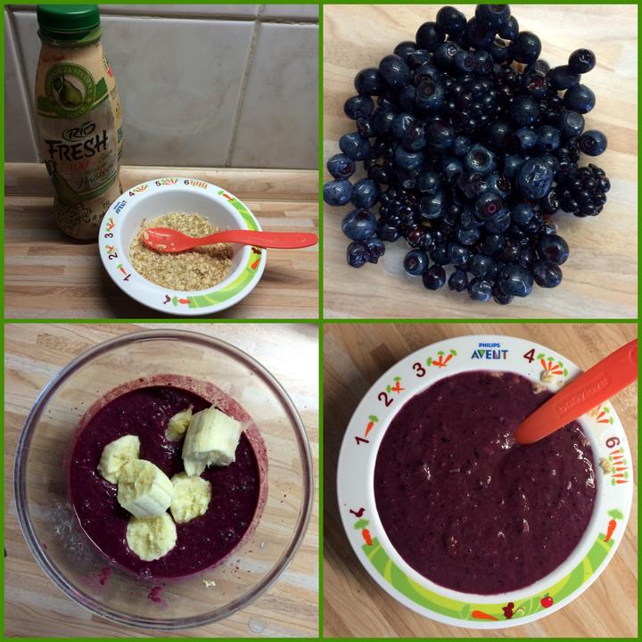 Dnesne krasne farebne tominkove ranajky 😊👌🏻 jemne mlete ovsene vlocky zaliate hruskovym #riofresh aby napucali a zmakli.. v miske som si tycovym mixerom mixla cernice a cucoriedky a tri lyzice bieleho jogurtu, pridala som cca polku bananika, potom zmaknute vlocky a vsetko spolu este pomixovala 😊 bolo to vyborne! 🙂
