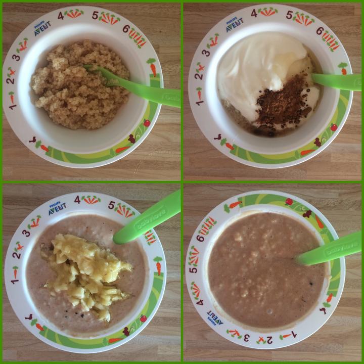 Dnesne tominkove ranajocky.. celozrnny kuskus, biely jogurt, lyzicka karobu, lyzicka medu, a popuceny bananik, vsetko spolu zmiesane a nakoniec vsetko spapane! 😊