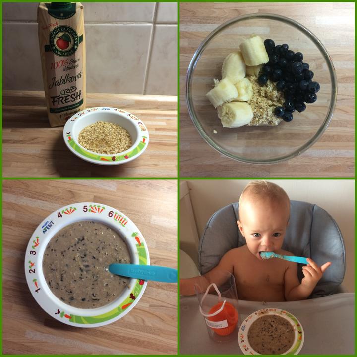 Dnesne tominkove ranajky 😊👍🏻 jemne mlete ovsene vlocky zaliate jablckovym #riofresh a nechane 15minut napucat a zmaknut.. k tomu bananik a cucoriedky a vsetko spolu mixnute tycovym mixerom.. toto je nasa velmi velmi oblubena kombinacia 😊👌🏻