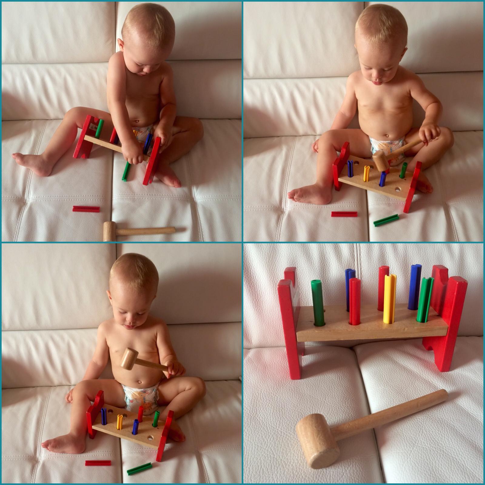 dalsia skvela ikea hracka! 🙂 ked bol tomco mensi tak obhryzal tie plastove palicky, teraz ich najcastejsie zatlaca (pretlaca) prstami.. a uz zacina pomaly aj buchat kladivom - tam kde ma 🙂 inak kladivo sluzilo na buchanie vsade okolo seba doteraz 😂👍🏻