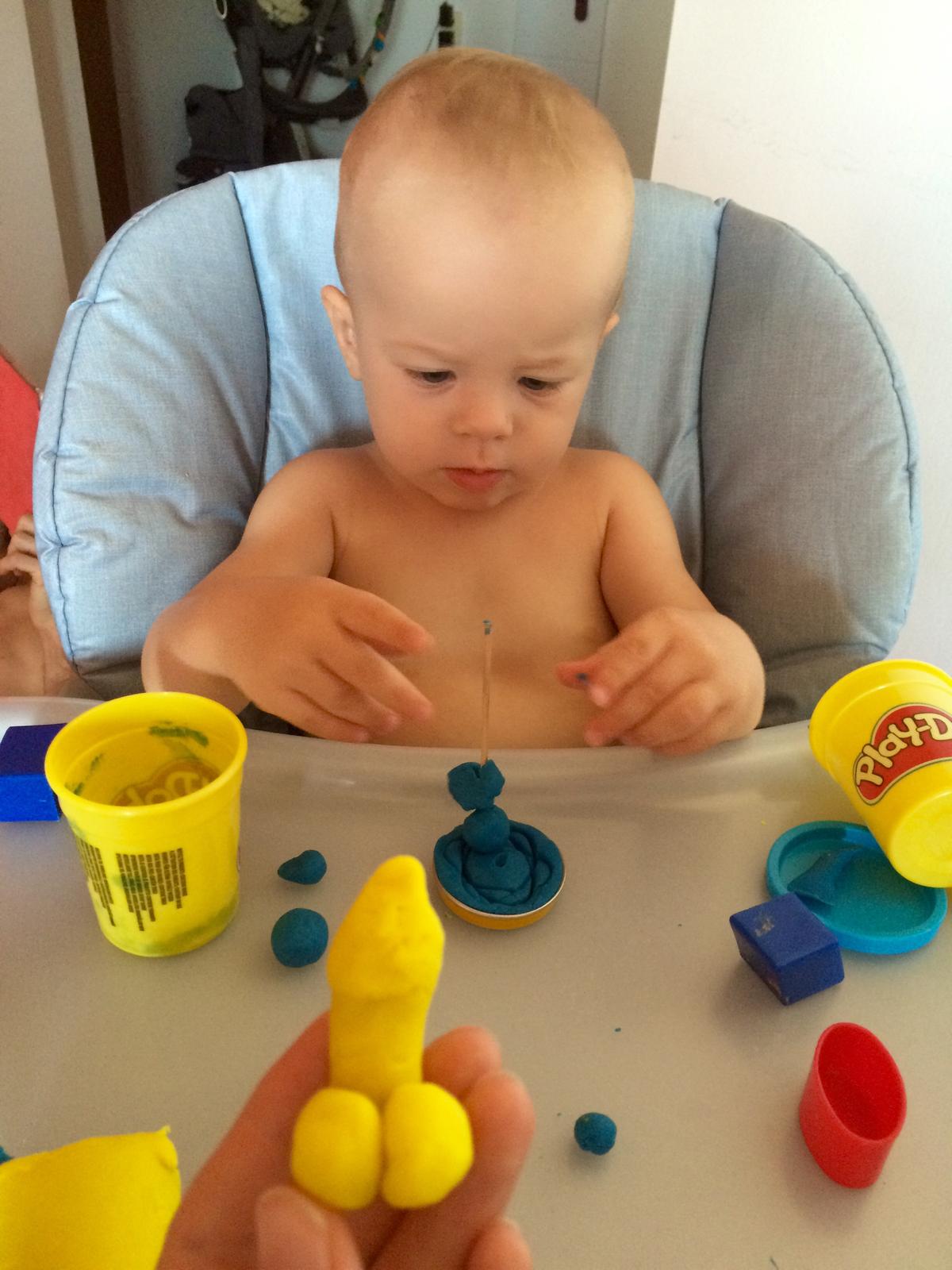 hrame sa s tominkom s plastelinou.. pride domov tato a cely nadseny mi hovori - jeeeej ukaaaz.. tak som mu kusok dala, a toto mi vratil naspat! ach ti chlapi, ti asi nikdy nedospeju.. 😂😂🙈