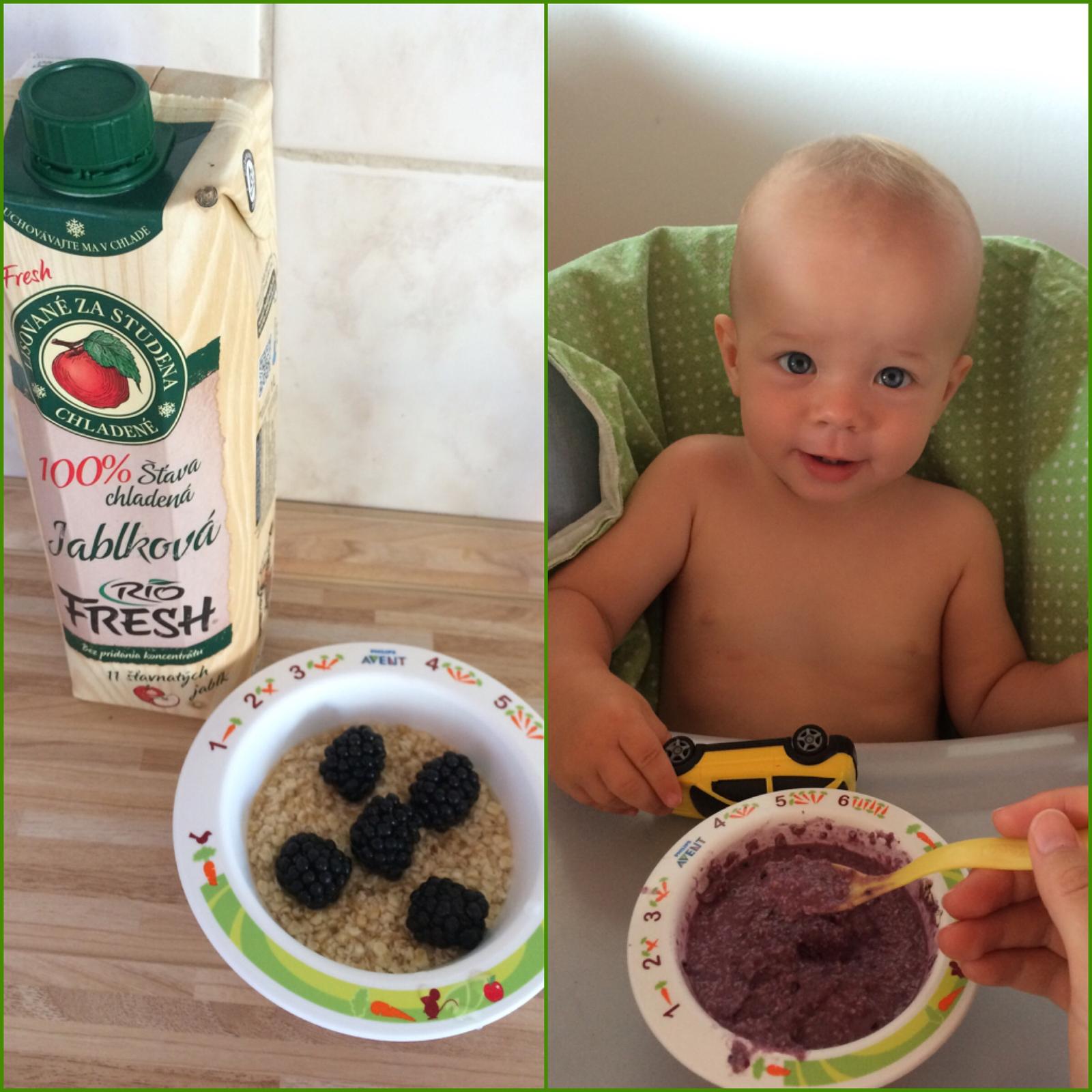 tominkove dnesne krasne farebne ranajky 🙂 jemne mlete ovsene vlocky zaliate jablckovym #riofresh a nechane chvilu zmaknut.. a potom rozmixovane s cernicami! 🙂 mnamka! 👌🏻👌🏻👌🏻