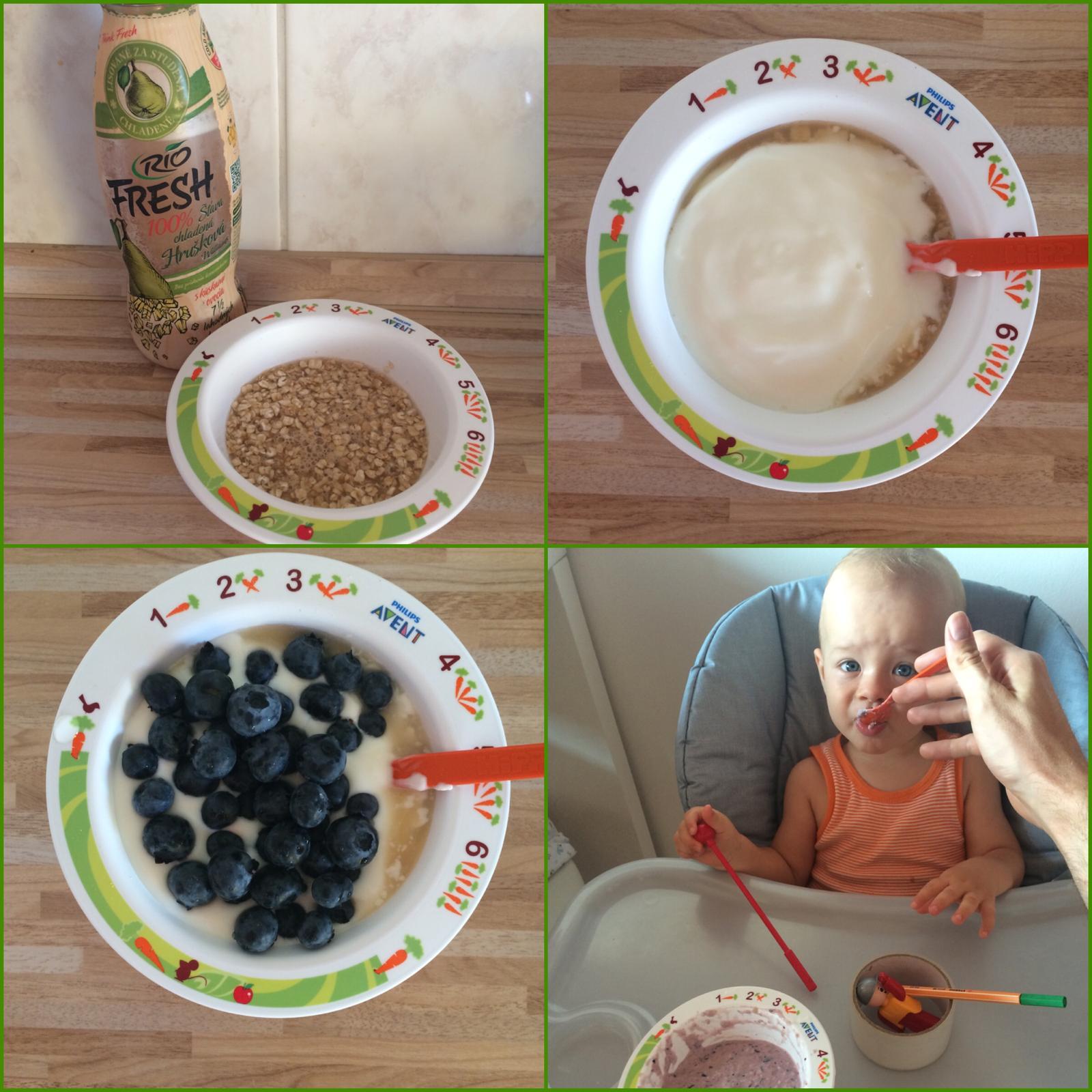 tominkove dnesne ranajky 😊 jemne mlete ovsene vlocky zaliate hruskovym #riofresh na 15minut aby zmakli a napucali.. potom som pridala biely jogurt a giganticke uuuuzasne cucoriedky, vsetko som spolu trosku mixla tycovym mixerom a mnamka bola na svete.. 😊 ps- ak sa vam zda ze mi nejak riadne narastla ruka, vidite dobre, akurat ze tomina rano krmil tomino velky takze ruka je jeho 😉