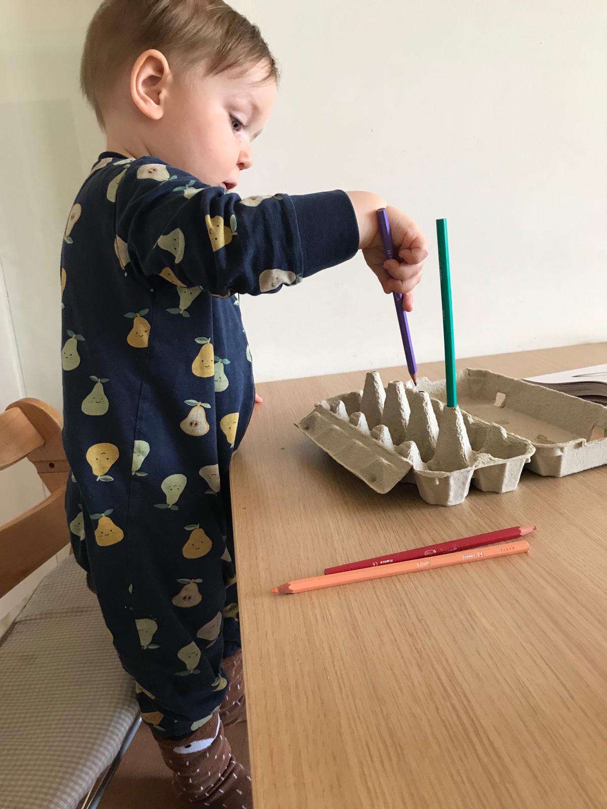 Karton od vajec + ceruzky (dopredu som urobila dierky)