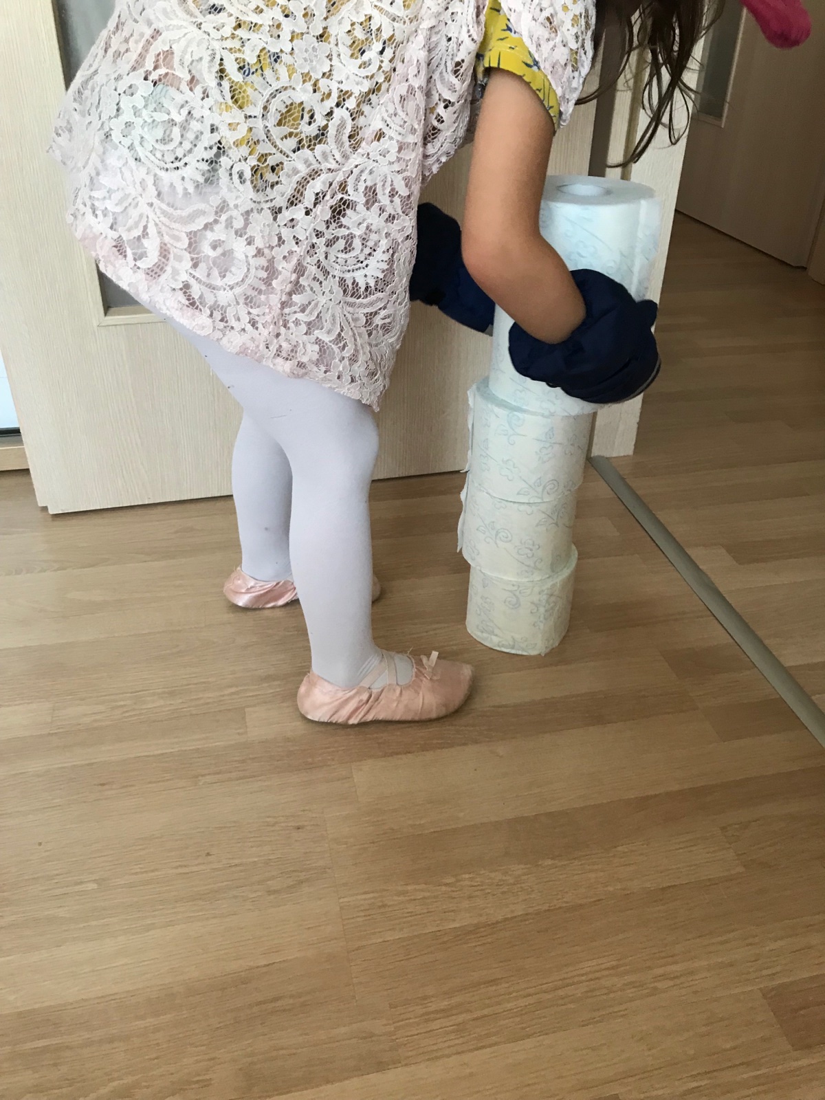 Stavanie toaletnej veže s lyžiarskymi rukavicami.