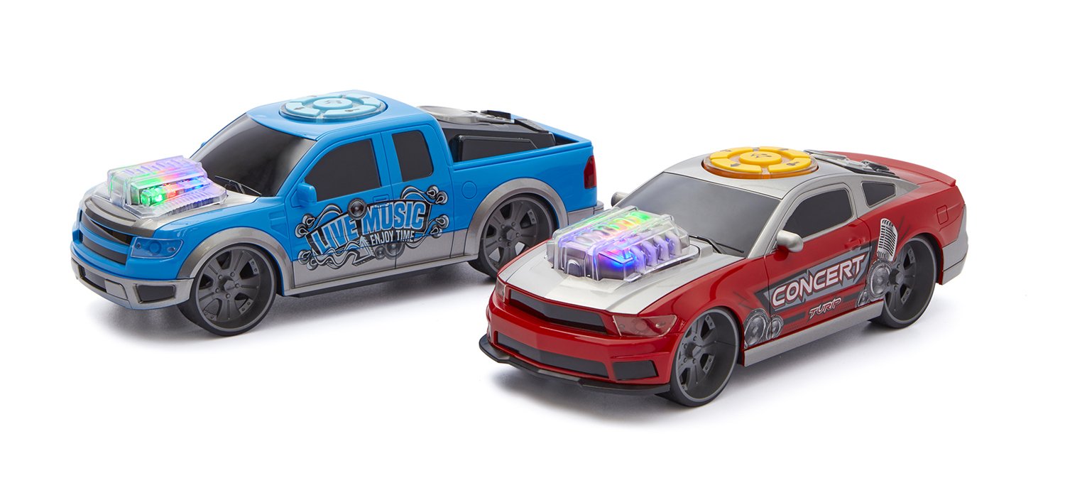 Do tejto kategórie patria hudobné nástroje ako sú bubny, hrkálky, klavíre, gitary, píšťalky a podobne. Sú tu aj hračky, ktoré vydávajú zvuky, hrajú tóny a detské pesničky.