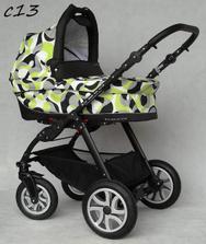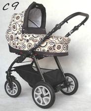 - Kombinovaný kočík s ľahkou hliníkovou konštrukciou.
