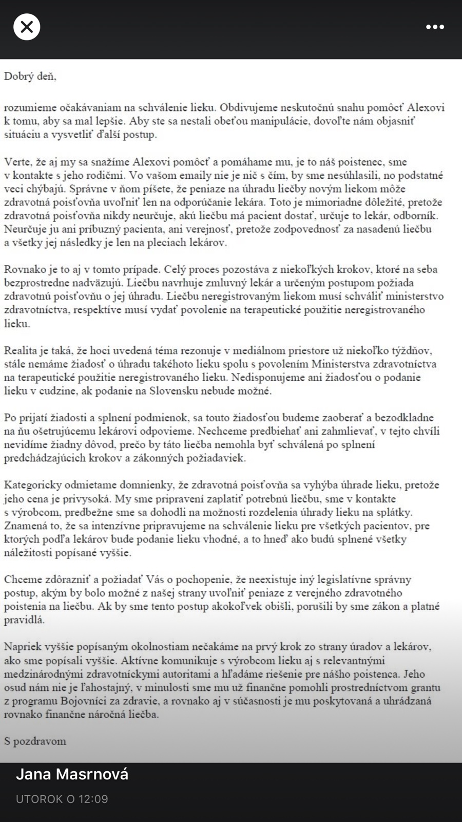 Všeobecná poisťovňa sľúbila uhradiť liek a liečbu Amelii. Alex a Alexej sú poistenci súkromnej poisťovne, zatiaľ sa nevyjadrili.