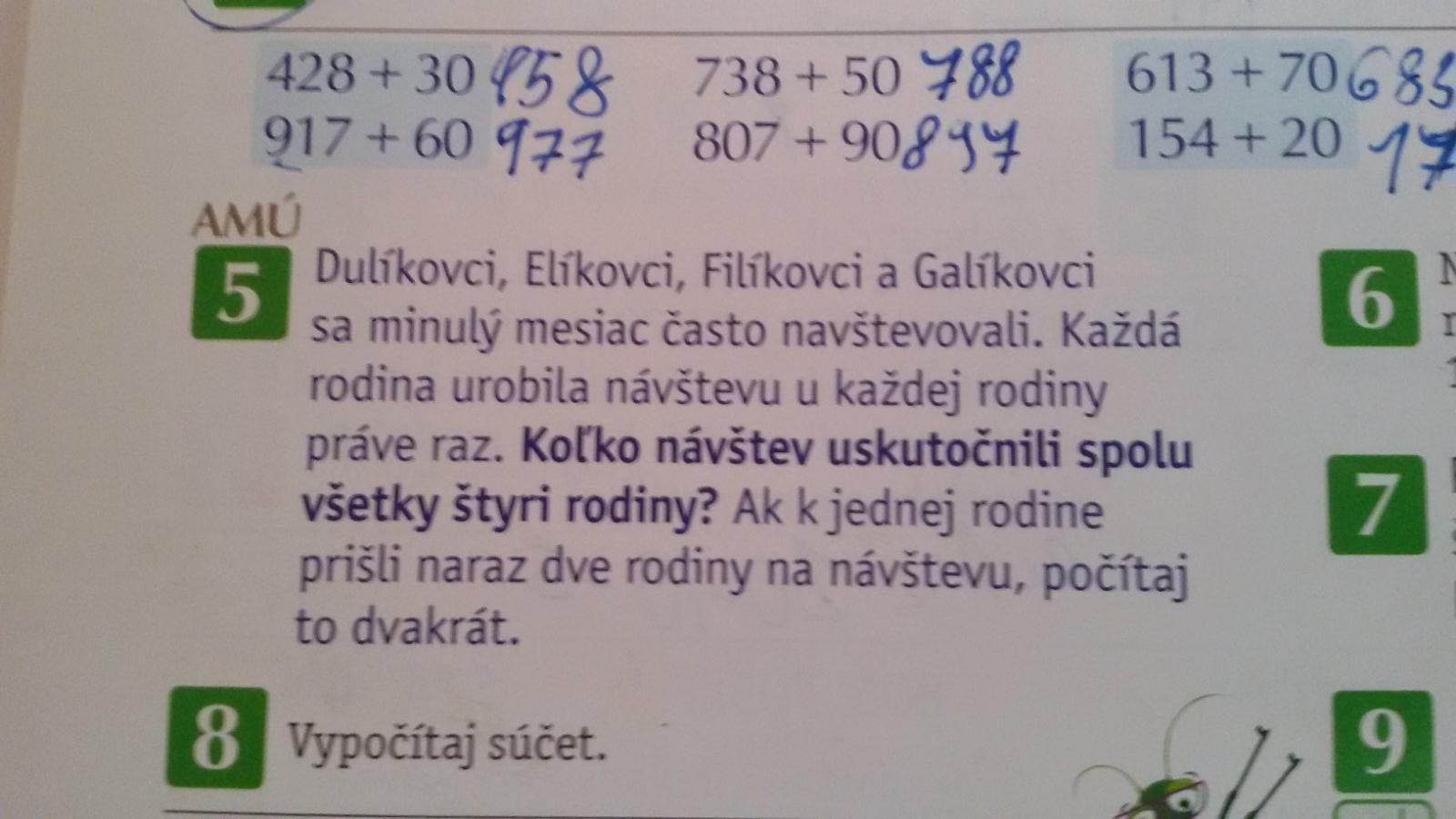 Áno, každá rodina spravila 3 návštevy. Takže 4 (rodiny) x 3 (návštevy) = 12