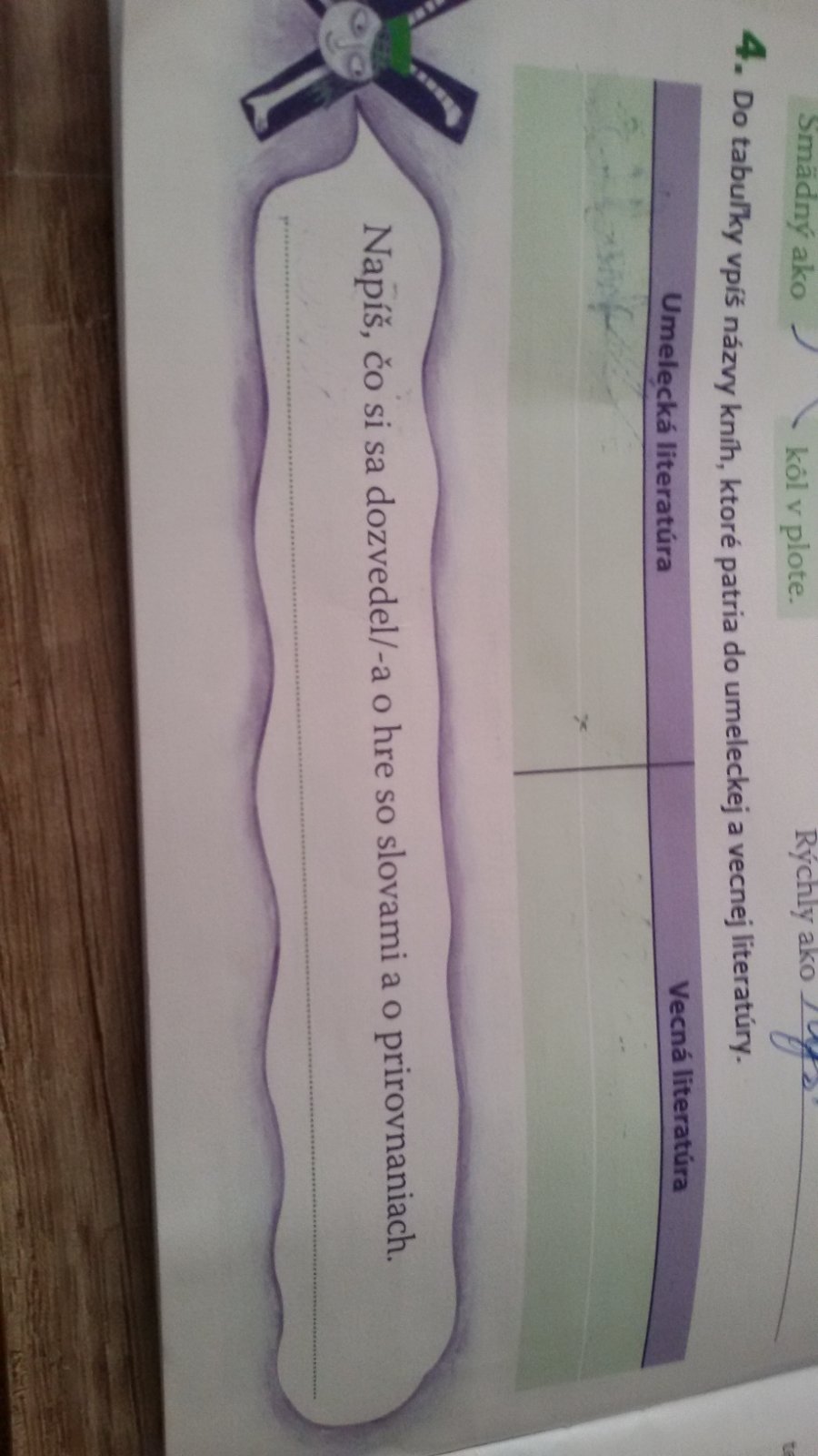 Pracovny zošit z čítania 4rocnik,co tam napísať? Ďakujem