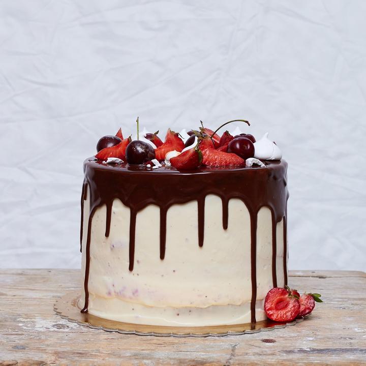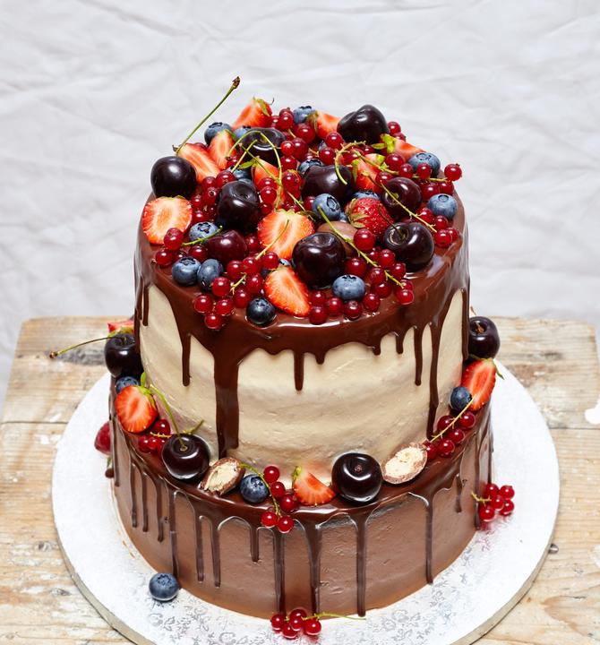 Red velvet torticka s malinami, vanilkou a karamelom 🙂