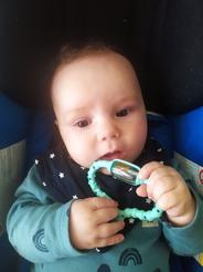 Hryzadielko sa Maťkovi páči, je ľahučké, dobre sa chytá do ručičiek, pekne masíruje ďasienka. Hrkálka, ktorá je súčasťou, je veľmi jemná so zaujímavými zafarbenými gulôčkami. Hryzadielko berieme aj do kočíka ako fajn ukľudňujúcu hračku.