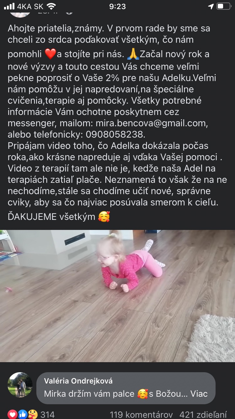 Nádych pre Sebastiana, poznám osobne. Vďaka 2% môže prežiť. Snáď sa to podarí