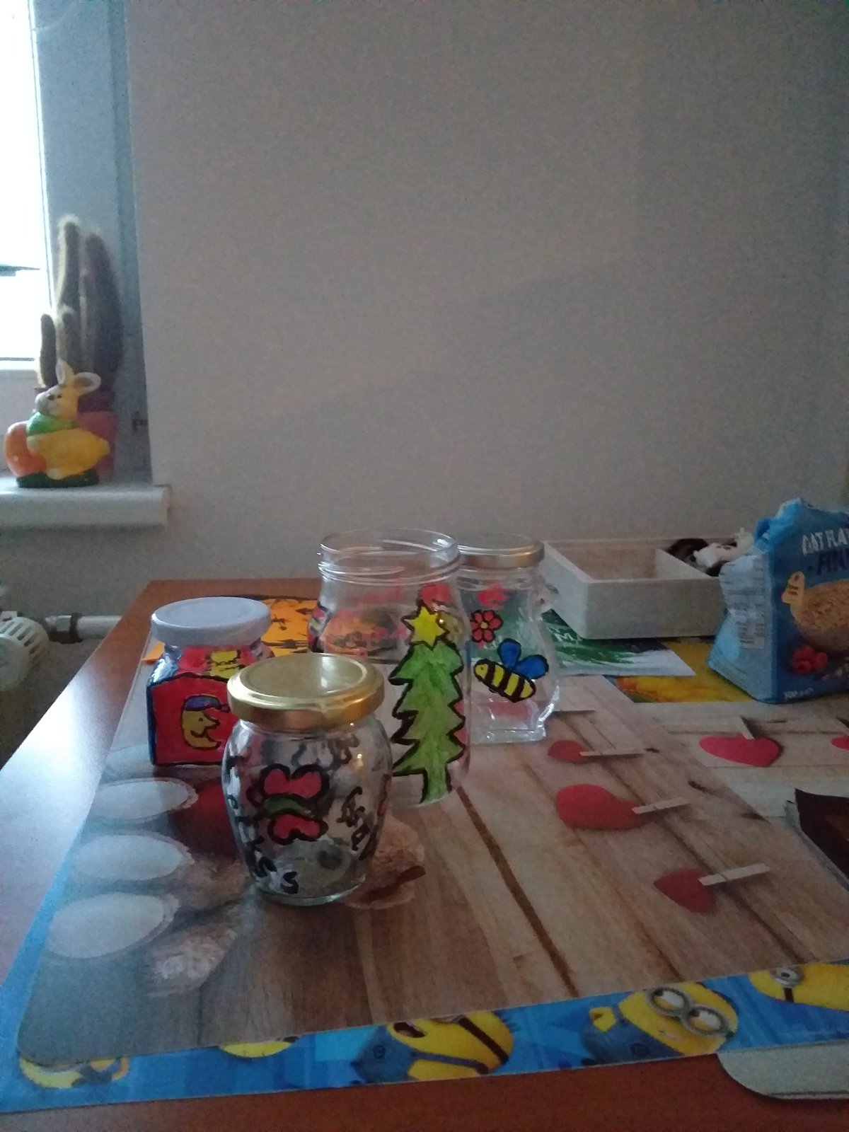A este toto sme spravili na medik /pomalovali sklo farbou na sklo