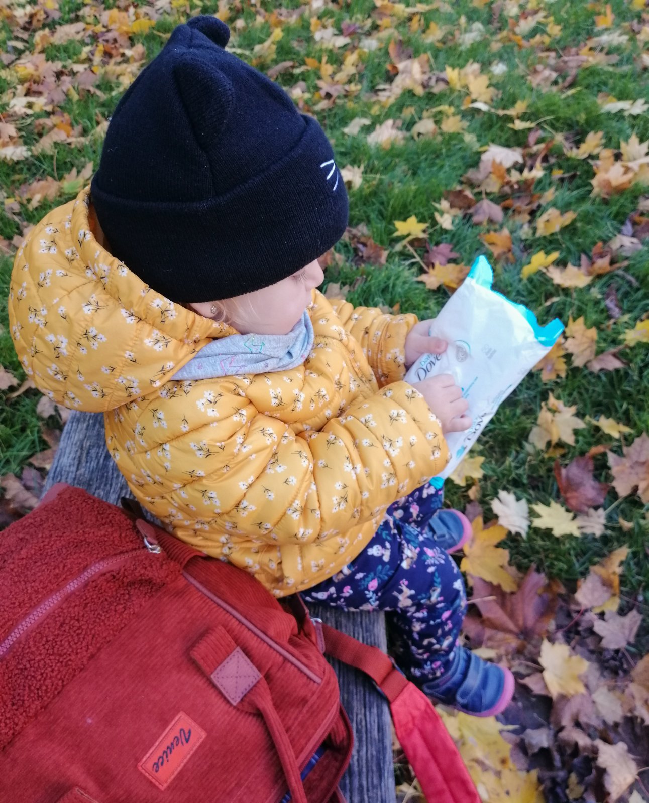 Najväčšia zábava posledných dní vonku je robenie kytičiek z listov a ich následné vyhadzovanie do vzduchu 😀 Ešte že v okolí ihrísk je toľko krásne farebných javorov, a keď nás preliezky omrzia, tak máme stále o zábavu postarané 😊 Základom našej ruksakovej výbavy sú naše obľúbené vlhčené obrúsky #baby_dove Rich Moisture, ktoré vyťahujeme, keď po namáhavom vyhadzovaní listov bruško vyhladne a nastane čas si niečo zabaštiť 😉