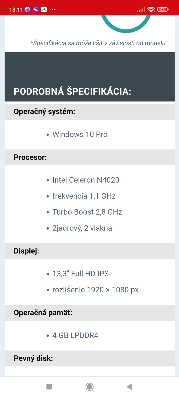 @zuzkat1 dala som do Google a áno ma 11,6 a našlo naň aj recenzie ... V skratke čo písali je že Windows zjedol veľkú časť pamäte, má pomalú wi-fi a horší obraz ... Ale zase ta nízka cena sa niekde odraziť musí ... Ideálne zvýšiť rozpočet aspoň na 320-350€ tam už sa bude dať nájsť niečo schopnejsie alebo cihat na zľavy/zľavové kupóny/akcie