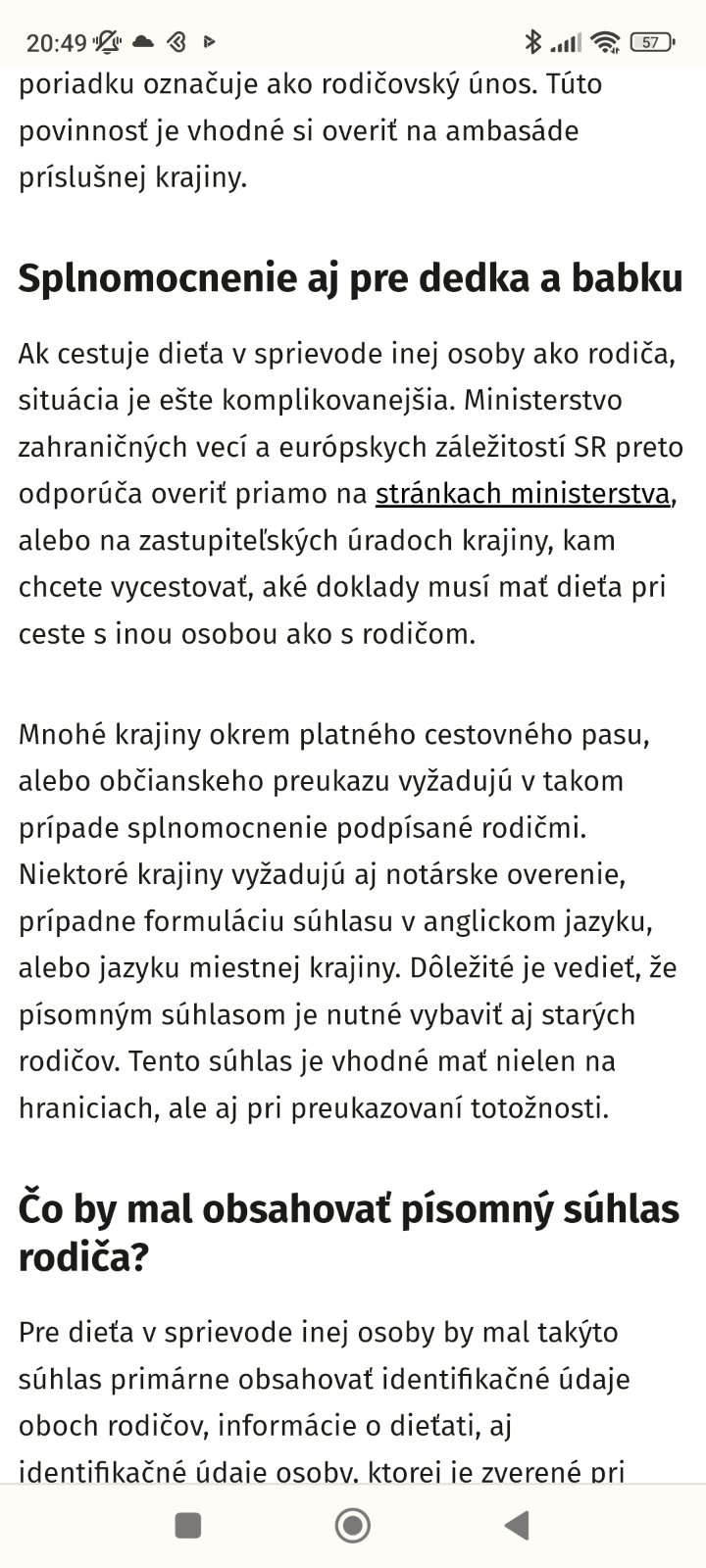 @zvieratko31 to s tým splnomocnením platí už niekoľko rokov. Že ty si o tom nevedela a už minulý rok vycestovalo dieťa bez zákonného zástupcu nebude úrady zaujímať, ak nastane problém. Skrátka neznalosť zákona neospravedlňuje. Vybav to splnomocnenie a nech si tú dovolenku užijú.